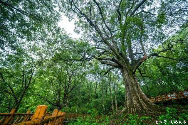 为了更好地保护红锥古树群,2019年怀集县投入超300万元,建设了红锥王古树公园,在古树附近修建了登山步道、观景台和木栈道等设施,防止游客和村民长期踩踏古树周边土壤,导致土地板结影响树木根系生长。